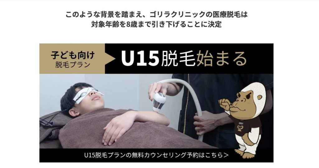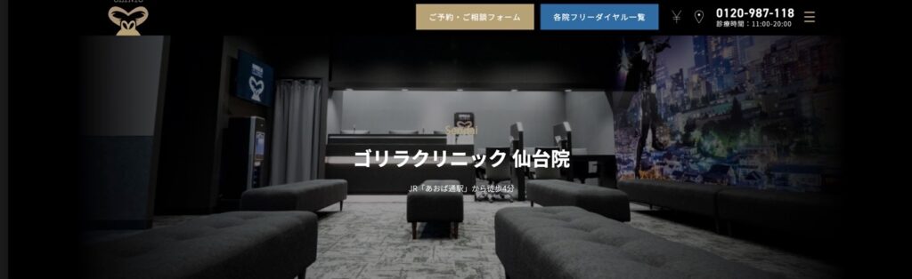 ゴリラクリニック仙台院 15歳以下お得なプランあり